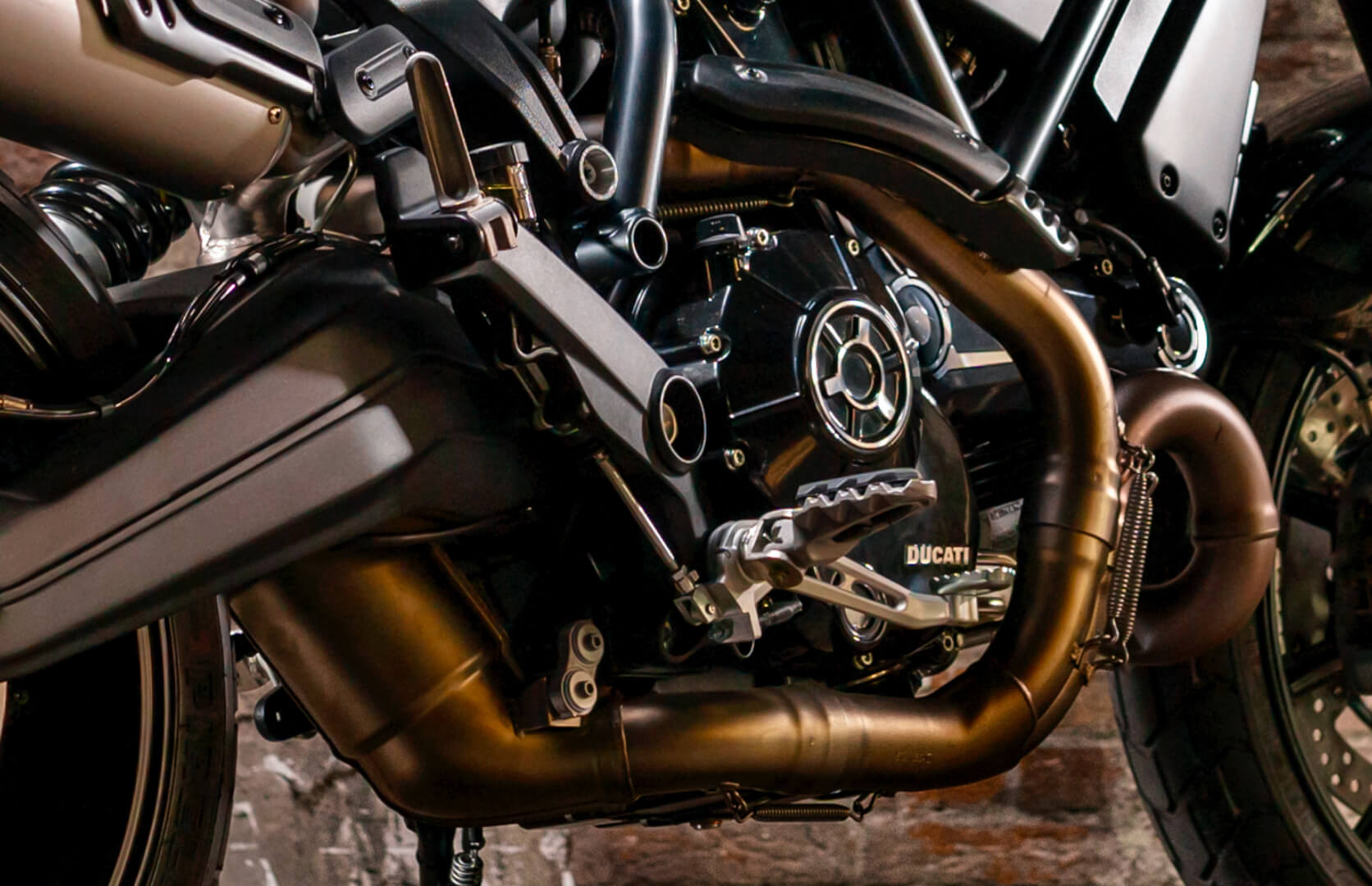 Стальная трубчатая пространственная рама с двойной верхней балкой. Солидную, как и сам Scrambler, раму, охватывающую двигатель, дополняет задний подрамник из алюминия. Подобная конструкция гарантирует отличную маневренность даже на горных серпантинах. Широкий руль позволяет свободно маневрировать в городском потоке, а колесная база в 1514 мм обеспечивает максимальную устойчивость — в том числе и на высоких скоростях.