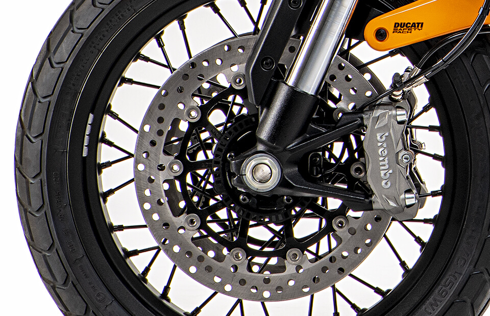 Новый Scrambler 1100 Tribute PRO оснащается колесными дисками с черными спицами (18 дюймов в передней части и 17 дюймов в задней части).