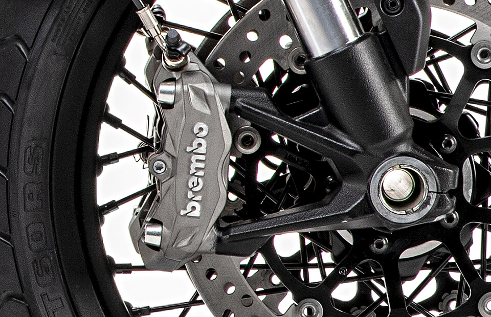 Scrambler Ducati 1100 Tribute PRO оснащается системой электронного управления Ride by Wire (RbW), тремя режимами движения, противобуксовочной системой Ducati Traction Control (DTC) и системой ABS для поворотов.