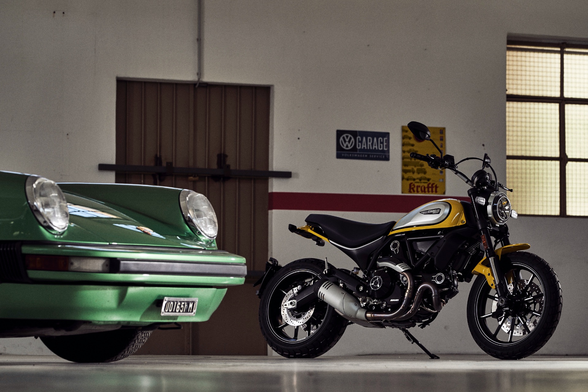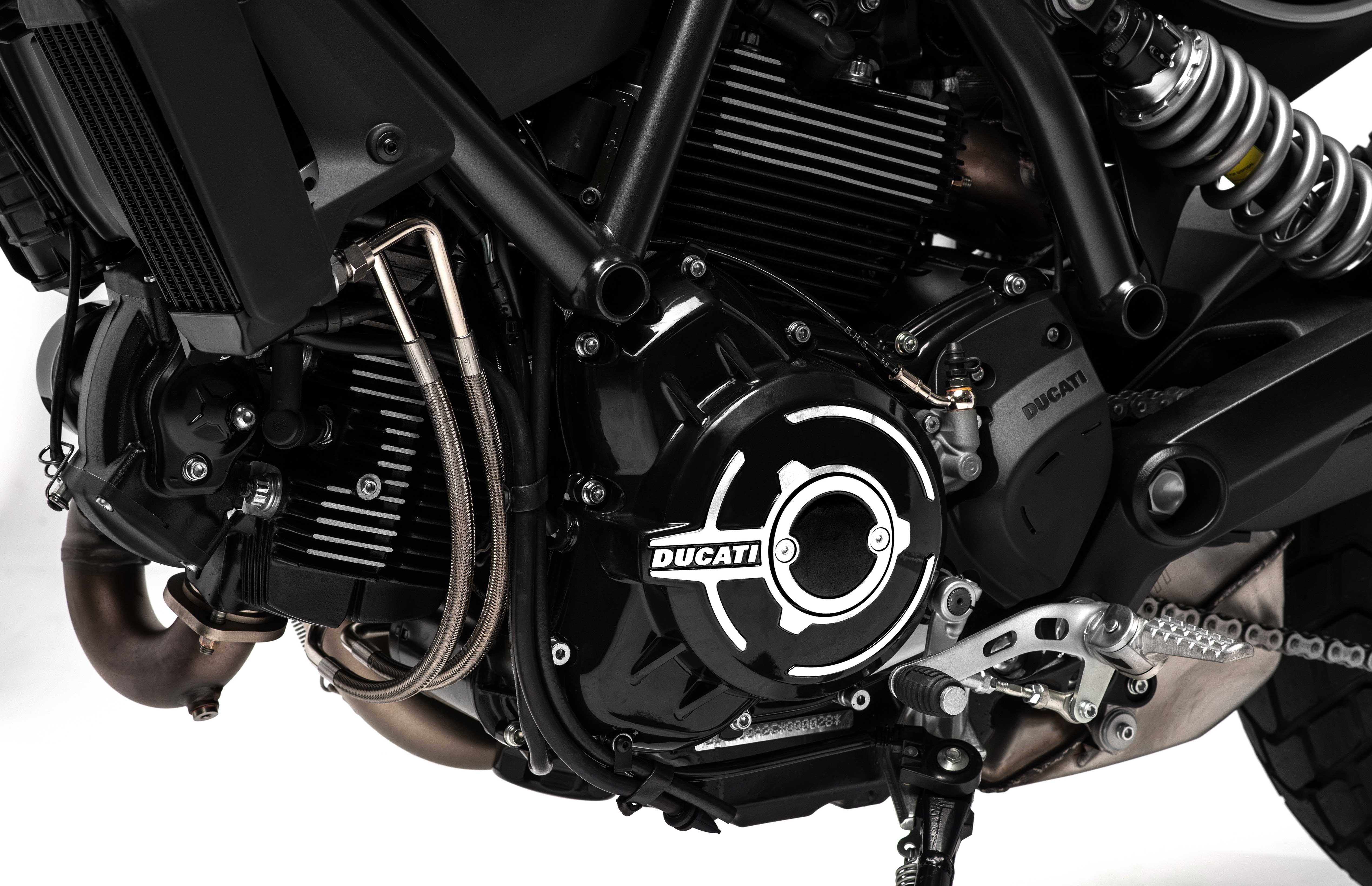 Новый красный цвет Rosso Ducati. Новые сменные алюминиевые боковые панели с выраженным рельефом. Фрезерованные крышки ремня. Новая накладка на глушитель.