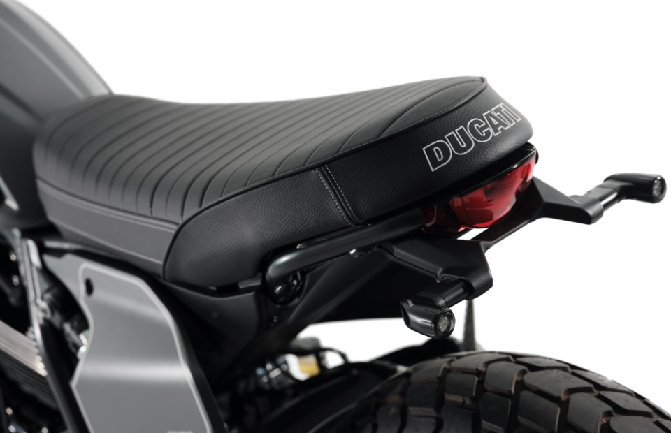 Под сиденьем нового Scrambler Nightshift предусмотрен боковой держатель для номерного знака в духе мотоциклов для флэт-трека, украшенный классическим логотипом Scrambler Ducati.