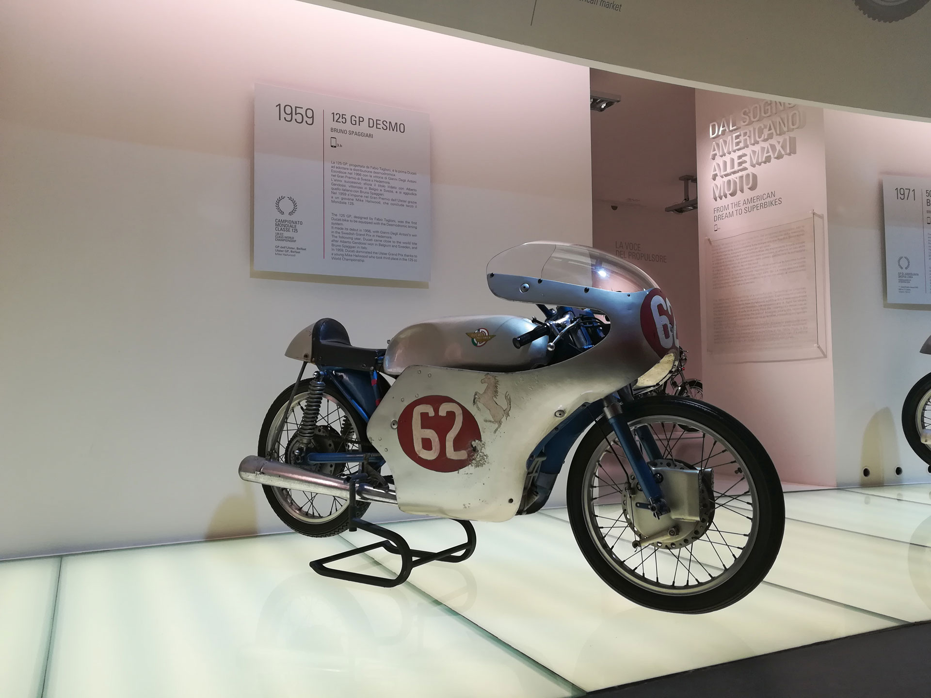 Мотоцикл 125 GP Desmo, детище гениального Фабио Тальони, стал для Ducati пропуском в мир мотогонок и впервые явил миру десмодромный привод клапанов.